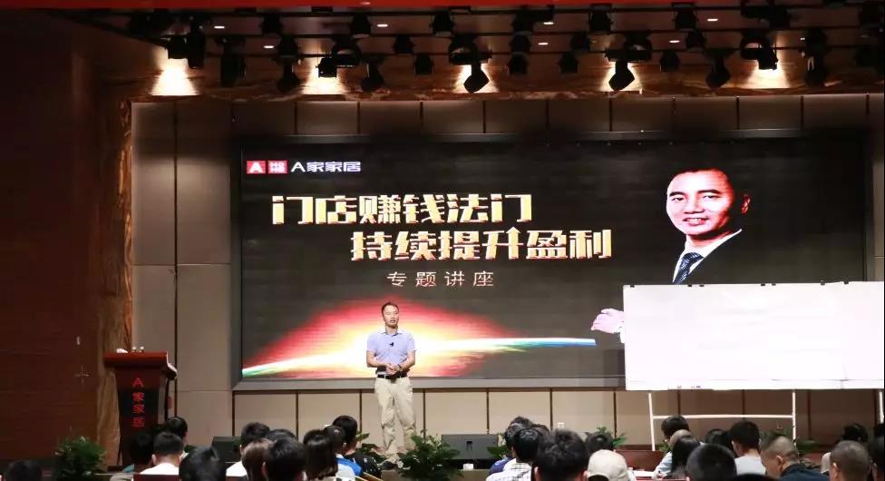 2019年9月3日,雨散晴露的家具之都東莞,A家家居集團總部國際會議廳。“門店賺錢法門 持續提升盈利”專題培訓講座第二期正式開課。A家集團董事長吳衛臣先生再次走上講臺,以“老師”身份為來自全國各地的經銷商講解經營之道。