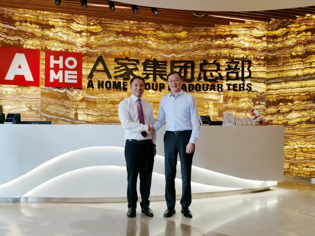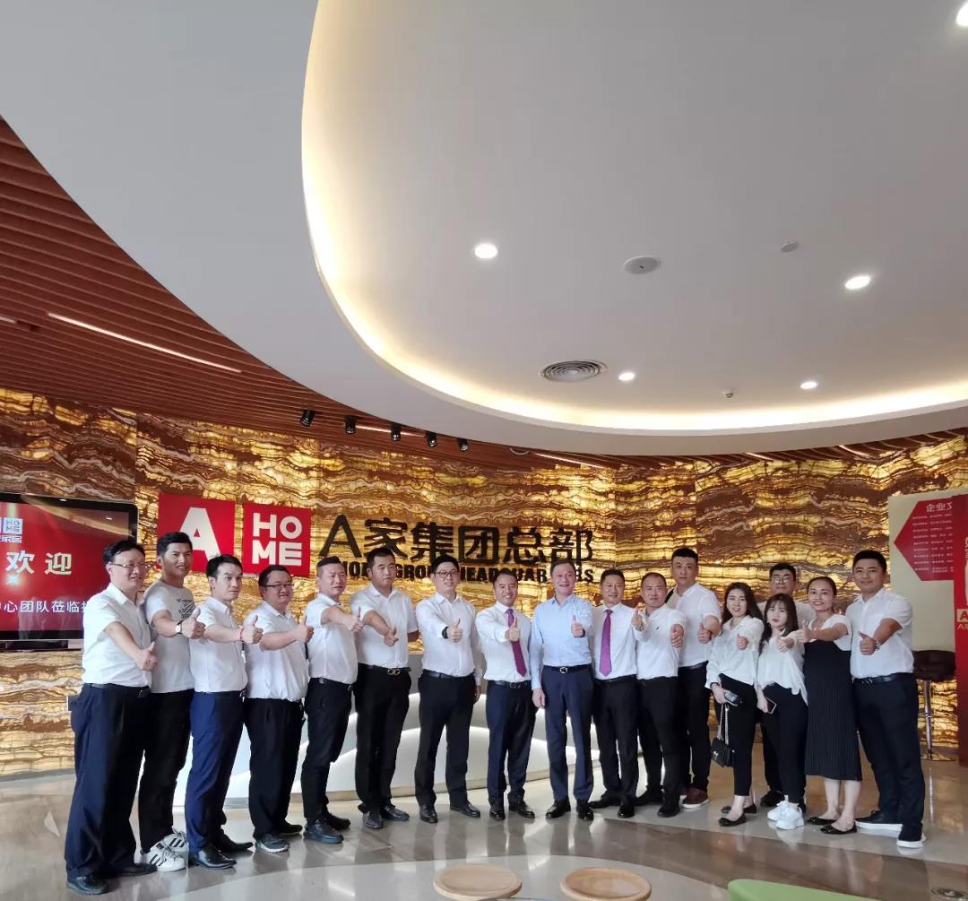 2019年7月8日,歐亞達商業控股集團副總裁向開文一行前來參觀A家家居總部大廈,在A家家居董事長吳衛臣和A家高層領導的陪同下,參觀了A家家居國際總部大廈,并對A家家居的總部展廳和產品系列進行了高度贊揚。