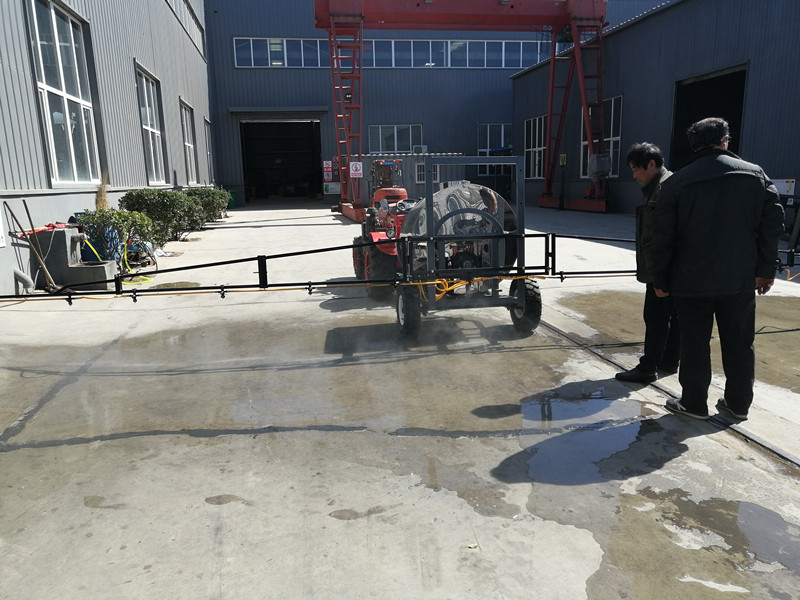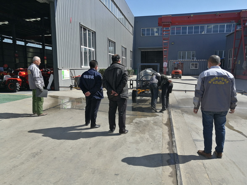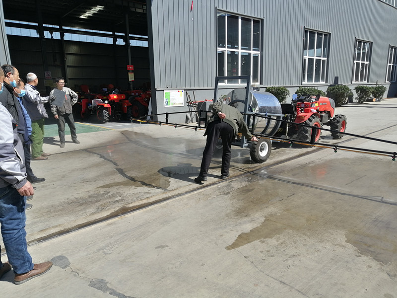 銷售經(jīng)理跟車間主任一說明情況,就安排楊師傅,開著小四輪掛接上打藥機(jī),來到廠區(qū)的組裝車間門口進(jìn)行實(shí)地演示。